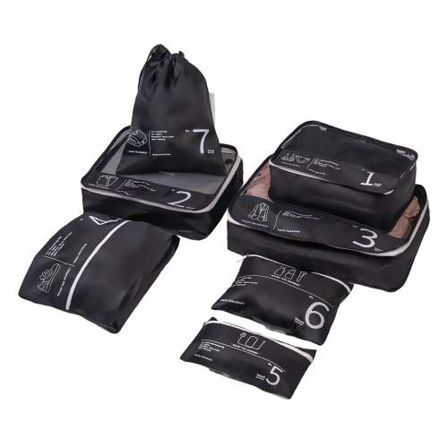 Travelhouse 7개 세트 여행 가방용 패킹 큐브, 여행 가방 정리 가방, 검정